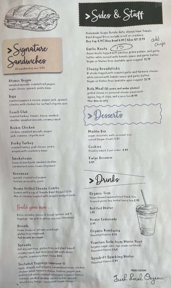 (can be made gluten-free) choice of bread, chipotle spread, roasted peppers & onions, pepper-jack cheese, spinach, chicken *all spreads are vegan/nut & gluten-free
