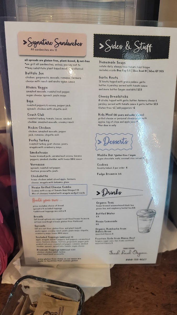 (can be made vegan / gluten-free) your choice of bread, spread, 4 "included" toppings (additional toppings extra) *all spreads are vegan / nut & gluten-free